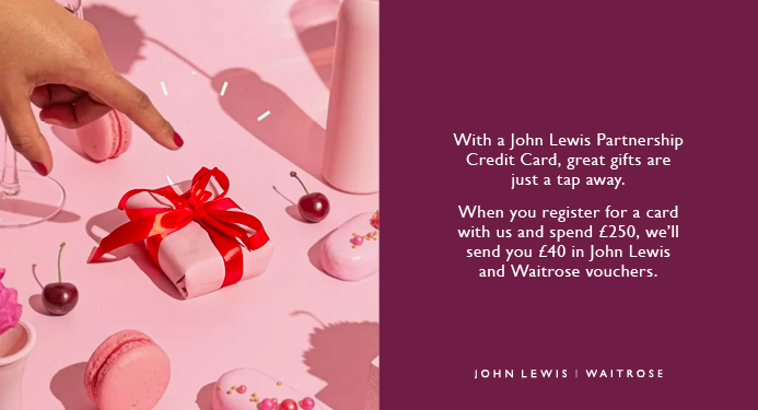 Campaign to promote a £40 voucher promotion for new John Lewis Partnership Card holders over the xmas period.